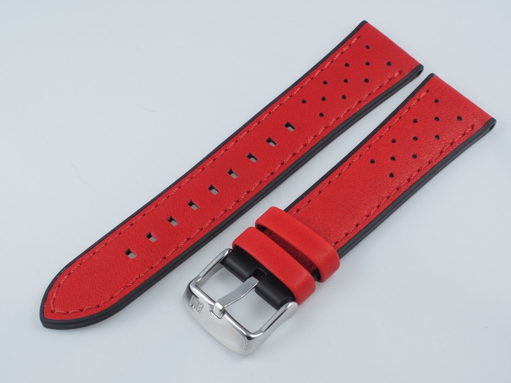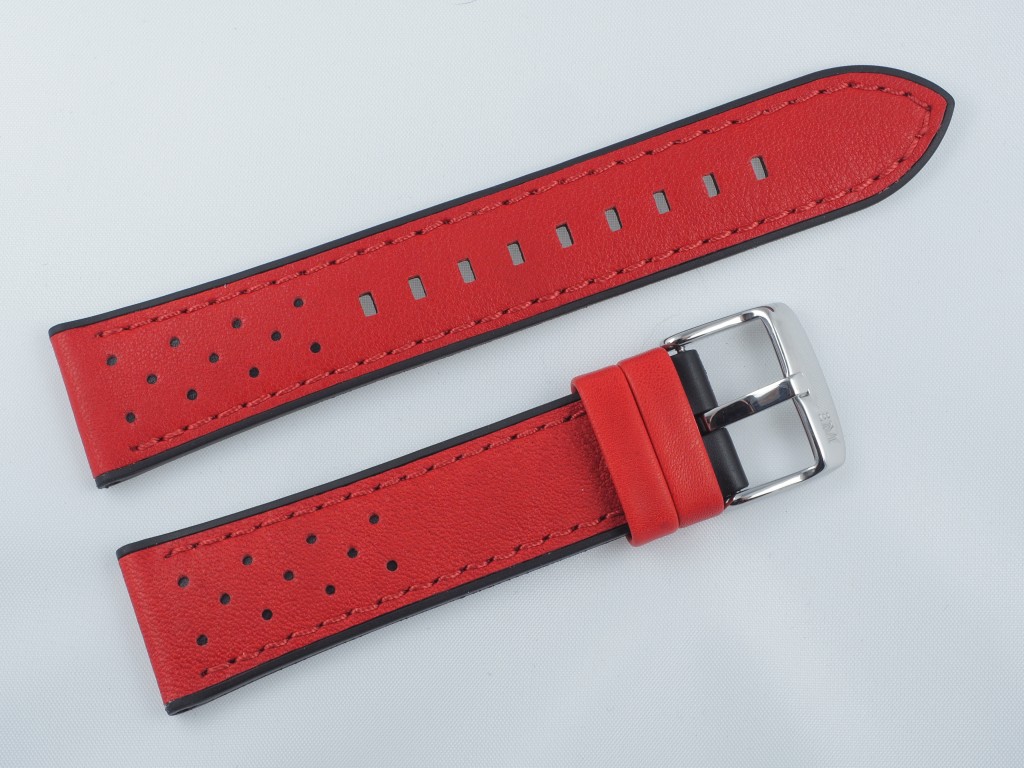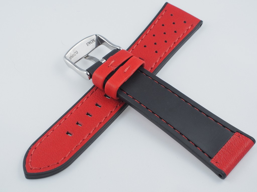 Pasek do zegarka włoskiego producenta Morellato Flyboard wykonany z gumy w kolorze czarnym oraz skóry w kolorze czerwonym. Pasek jest odporny na zamoczenie w wodzie. Sprzączka paska do zegarka wykonana jest ze stali nierdzewnej w kolorze srebrnym.