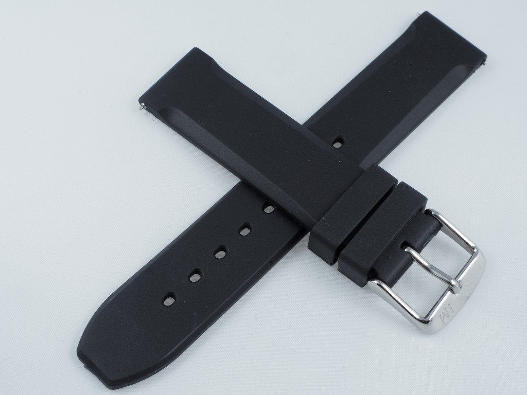 Pasek do zegarka włoskiego producenta Morellato Lugano gumowy czarny niezwężany, gładki . Pasek jest odporny na zamoczenie w wodzie. Sprzączka paska do zegarka wykonana jest ze stali nierdzewnej w kolorze srebrnym.