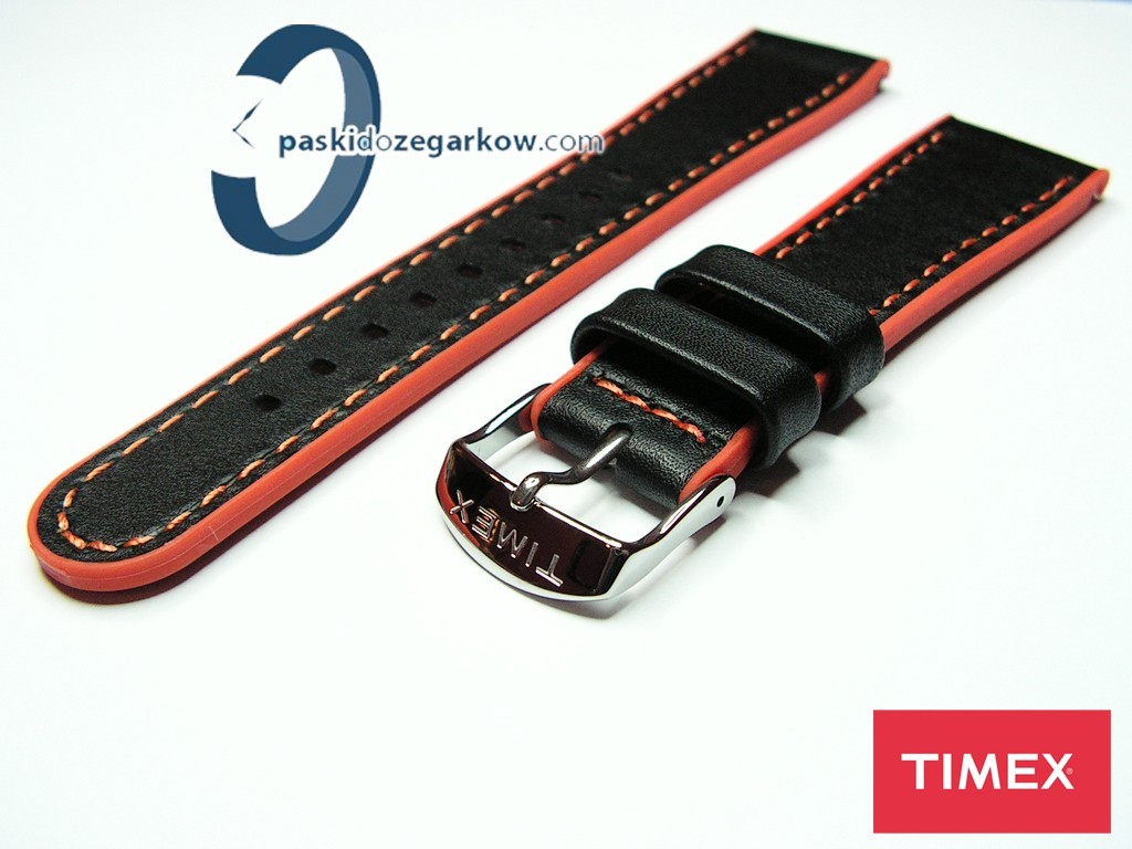 Oryginalny pasek Timex do modelu T2M428, gumowy ze skórzanym obszyciem o szerokości 22 mm, boki paska w kolorze pomarańczowym, Sprzączka stalowa z wybitym napisem Timex.